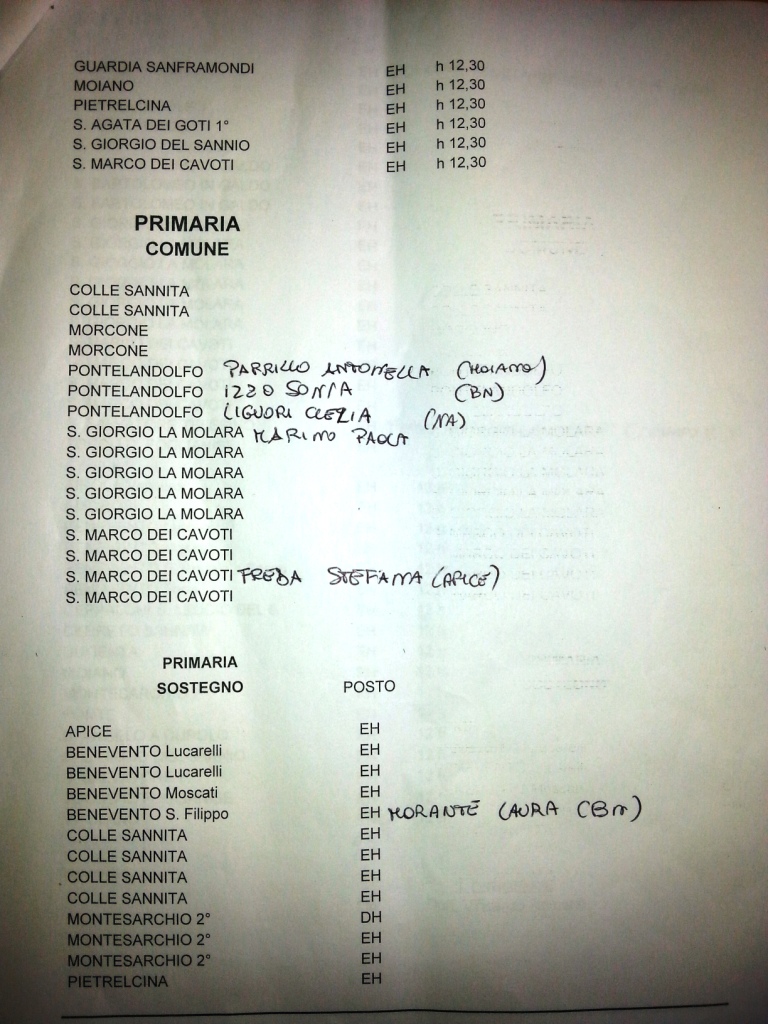 Benevento Disponibilità infanzia e primaria dopo la scelta del 24 agosto